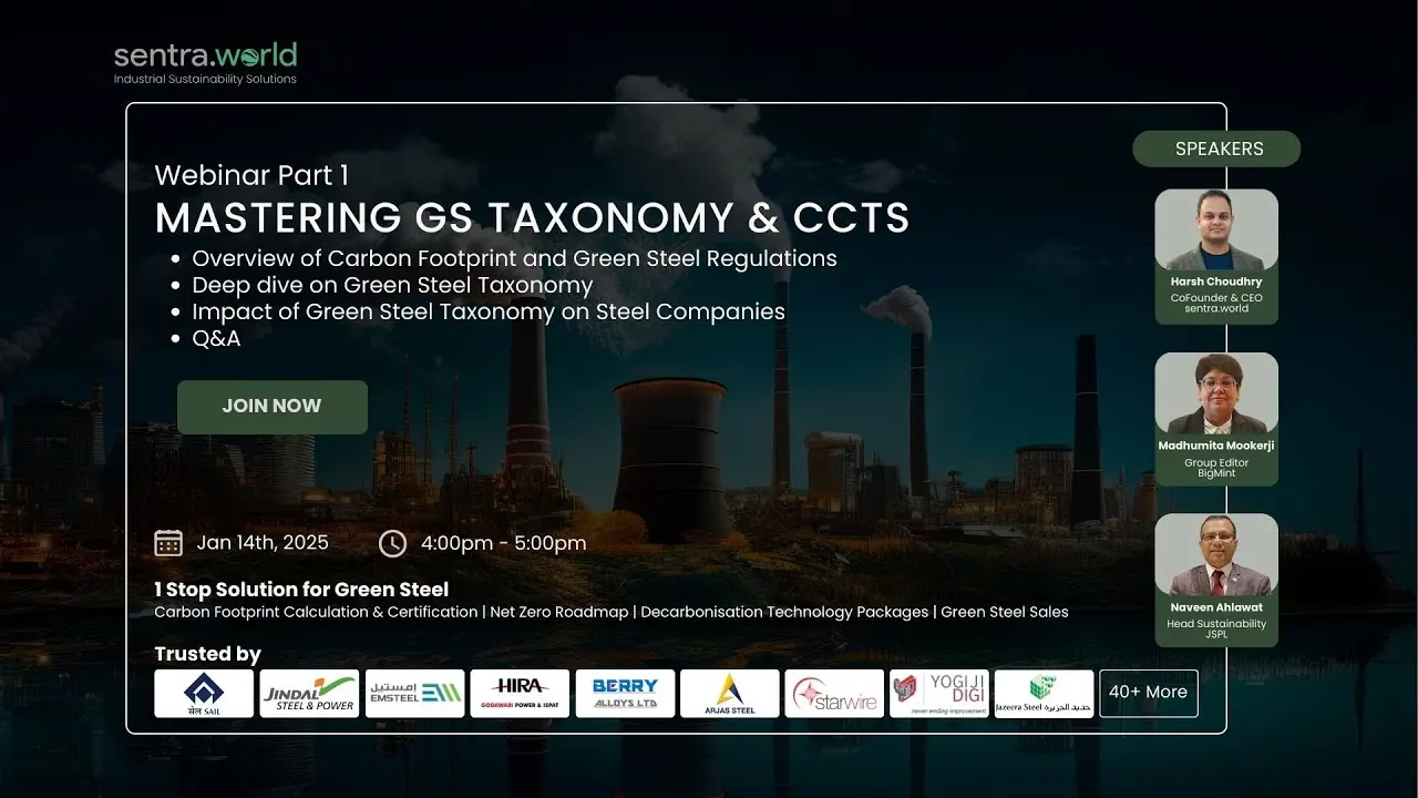 Thank you for attending our webinar on Mastering Green Steel Taxonomy & CCTS. We sincerely hope you found the session valuable and insightful for your work. In this webinar, industry experts guided participants through essential strategies for navigating the Green Steel Taxonomy and the Carbon Credit Trading System (CCTS).